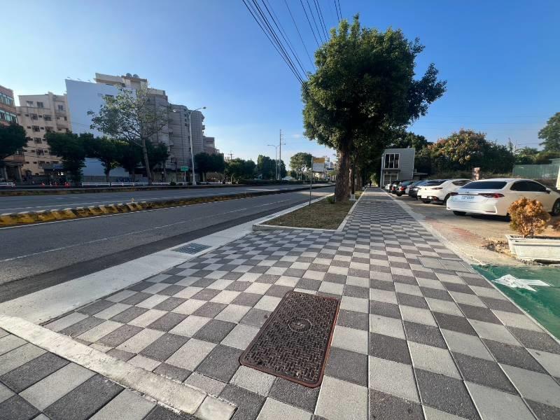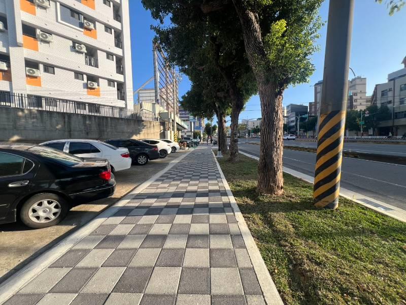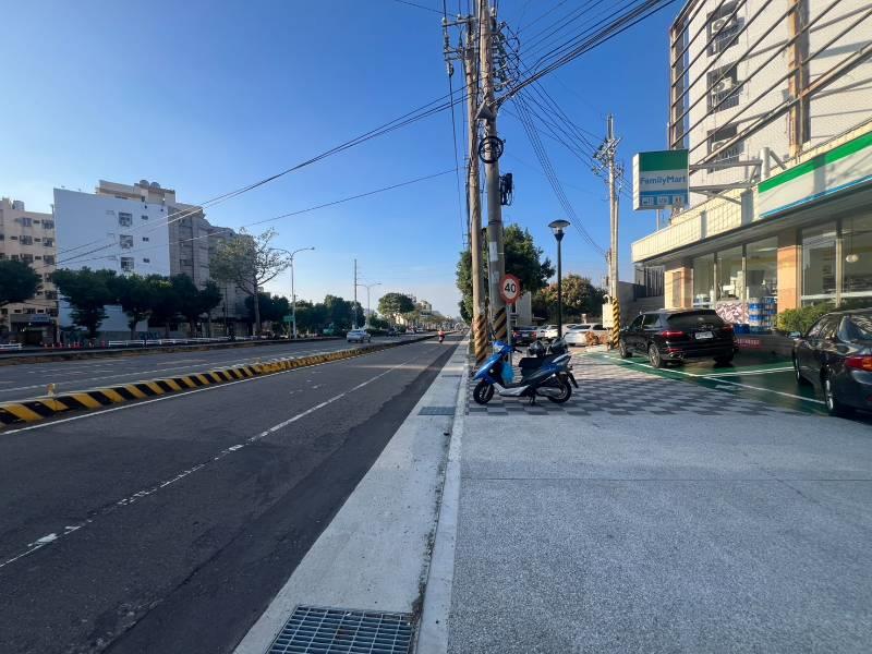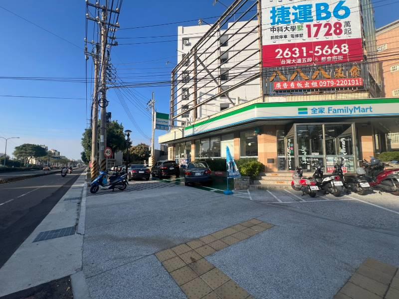 位臺灣大道及晉文路交叉口旁,全家正隔壁,人行道有規劃可騎上去
