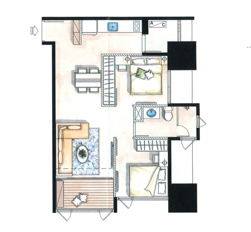 2房 1 廳 1 衛 1 陽