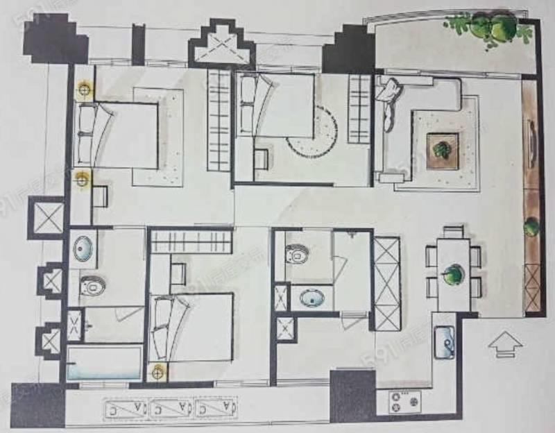 3房 2 廳 2 衛 2 陽